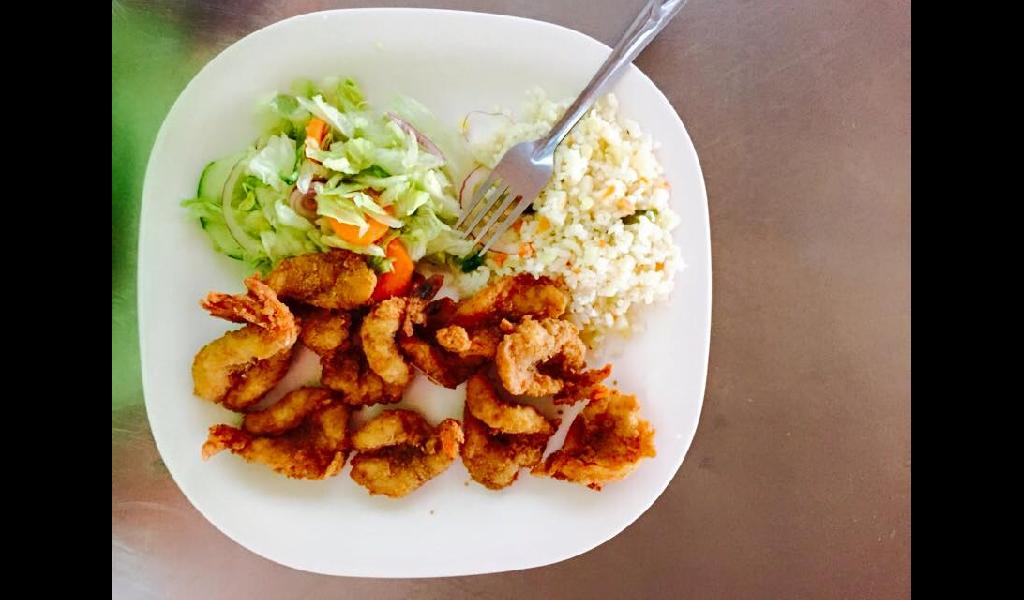 Platillo Mixto: Camarones a la diabla, camarones empanizados, camarones al mojo de ajo, filete empanizado, pulpo a la mantequilla.